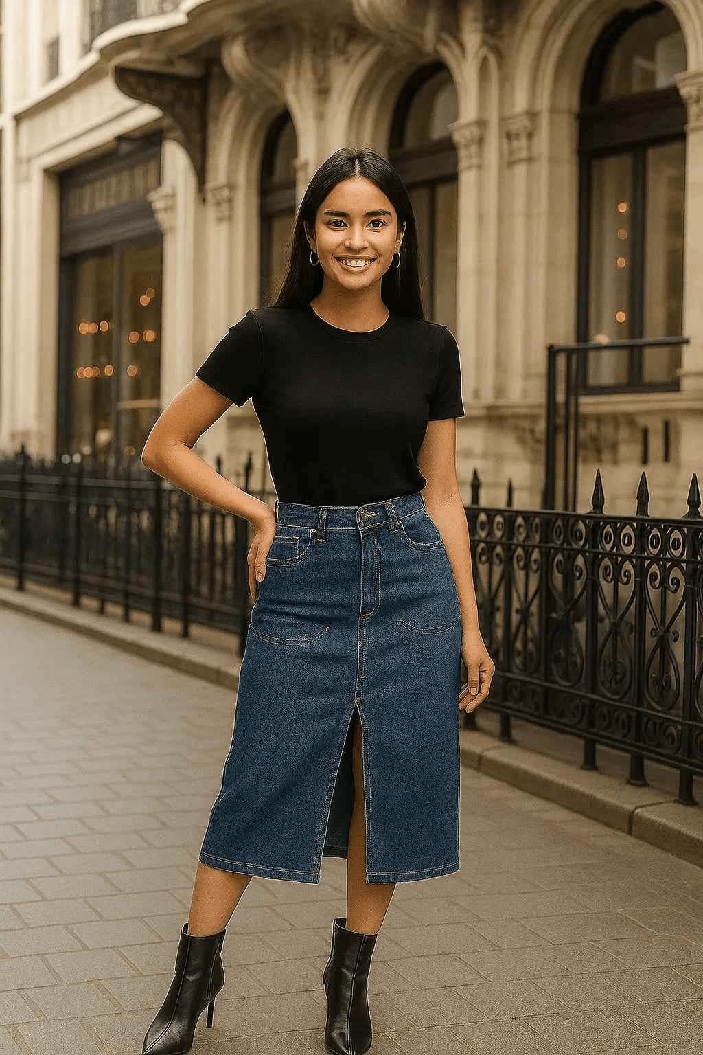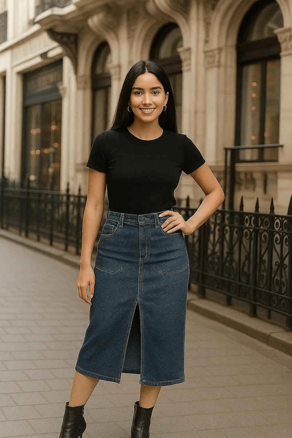 Elevate your wardrobe with this stylish women’s Blue Denim Midi Skirt, featuring a timeless plain pattern. Made from high-quality denim, it offers both comfort and versatility, perfect for casual and semi-formal occasions. Available in sizes 28 to 32 inches, this single-piece skirt is a must-have for a chic look.